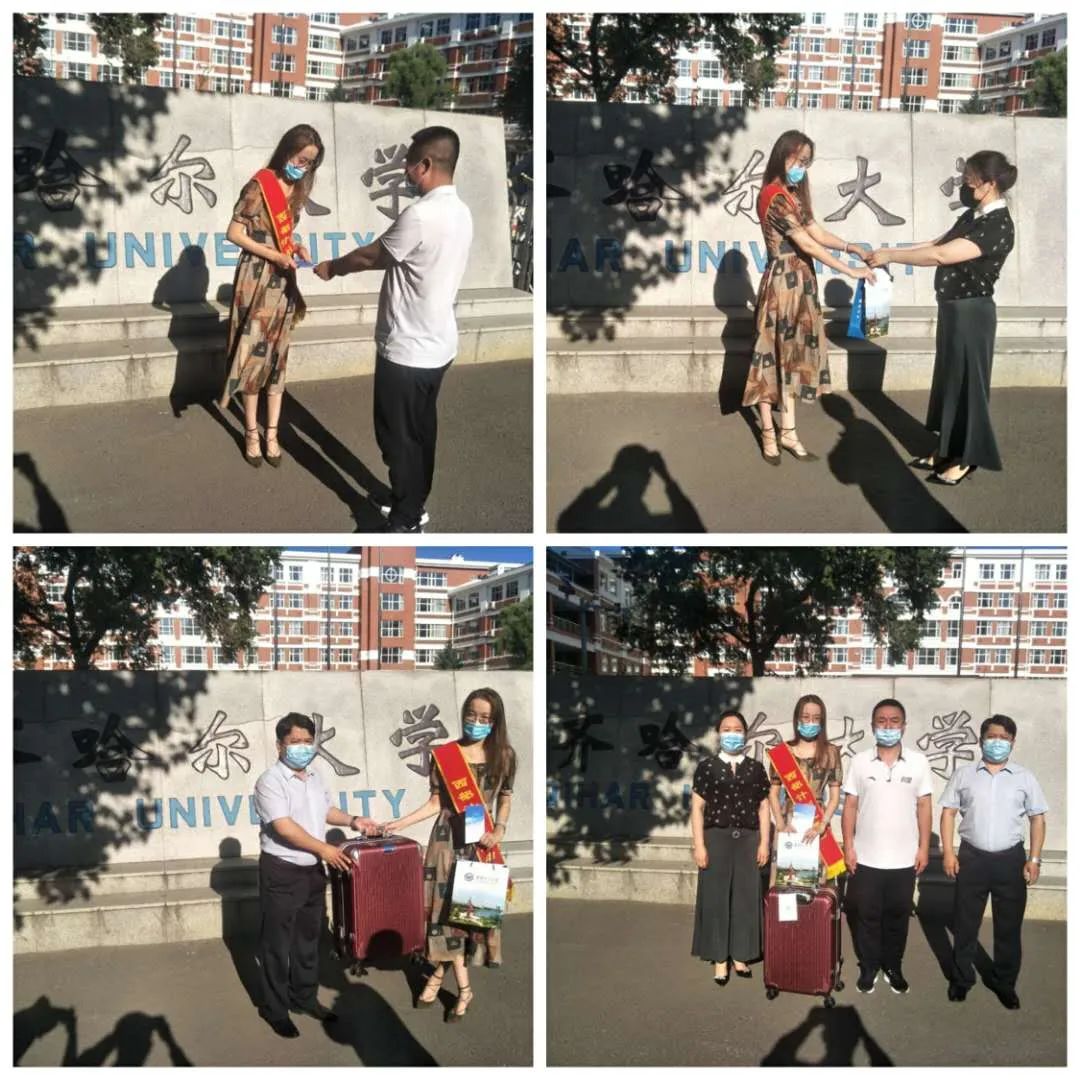 为了表达对西部计划志愿者们的崇高敬意和殷切期望,校团委于7月20日下午在中区校门口举行西部计划志愿者线下欢送仪式。校团委书记孙大鹏、副书记计红、马小华出席本次活动,与西部计划志愿者代表、原校学生会宣传部副部长、外国语学院孙宁同学(家住齐市建华区)充分交流,并代表学校西部计划项目办为志愿者代表披挂绶带,赠与旅行箱包和带有学校标识的水杯、记事本、明信片、校徽等纪念品。