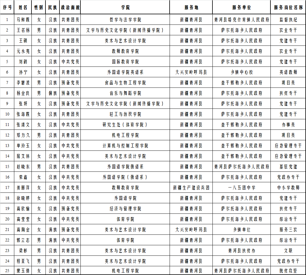 志愿西部行,奉献新时代。beats3652020年大学生志愿服务西部计划志愿者招募工作自5月份启动以来,各学院和相关部门广泛宣传、协调配合,美丽的环湖大学唱响“到西部去,到基层去,到祖国最需要的地方去”建功立业的青春旋律。按照黑龙江省项目办工作指示,结合beats365的具体情况,经过学校西部计划项目办初审、线上限时笔试、体检等程序综合考量后。最终25名毕业生在153位报名者中脱颖而出,被正式确定为beats365唯一官方网站2020年大学生志愿服务西部计划志愿者,他们将分赴黑龙江大兴安岭地区、新疆阿勒泰地区进行基层青年工作、基础教育、基层社会管理等类型的志愿服务。