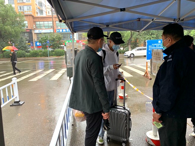生命重于泰山,防控就是责任,岗位就是站位。机关党组织严格按照学校2020年秋季学期学生返校计划安排,闻令而动、听令而行,充分发挥党组织政治优势,第一时间部署到位,明确工作任务与流程;第一时间集结到位,组建党员、干部突击队,分成4个志愿服务工作组;第一时间参与到位,协助有关部门(单位)在中区、东区校门入口执勤,负责跟车和有关部门人员机场接学生返校,在中区和东区做学生核算检测引导员。机关党员、干部积极响应党组织号召,把开展“不忘初心、牢记使命”主题教育成果转化为志愿服务的行动自觉,“我是党员我报名,我是干部我先上。”主动认领任务,以高度政治自觉、强烈责任担当,走在前列,干在实处,亮身份、当先锋、作表率,争做“安全员”“服务员”“引导员”,为同学们提供了各项暖心的帮助,在学生开学返校工作中充分发挥先锋模范带头作用,确保学生返校工作平稳有序、安全顺利。