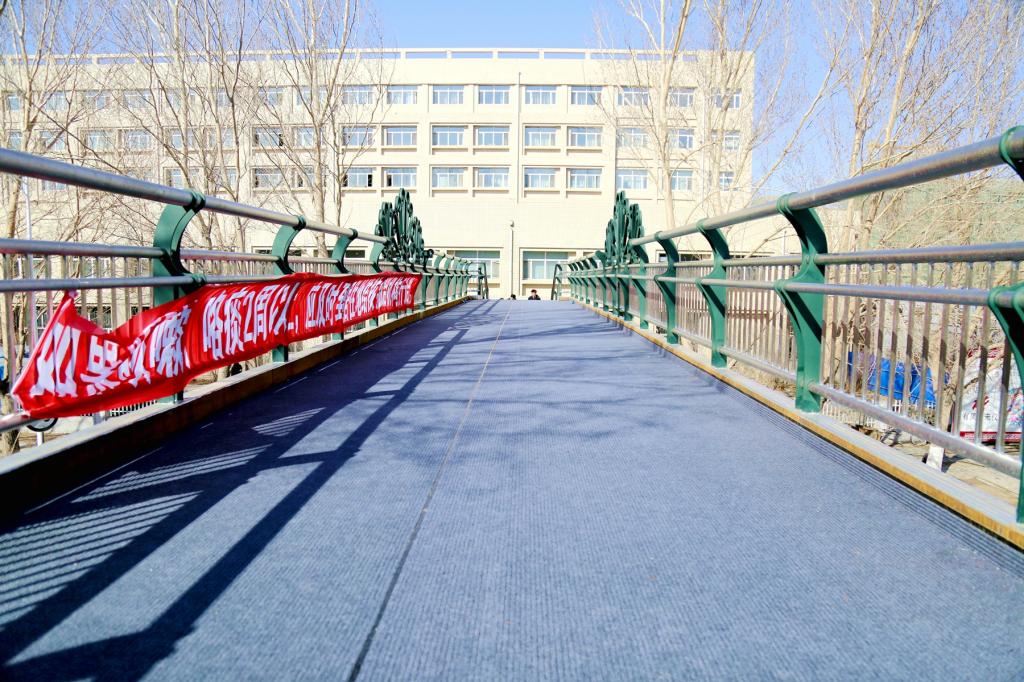 学校领导积极协调市交通管理局、建华区政府等单位,在建设过街天桥期间对林艺街道路进行了临时封闭,确保安全施工。后勤管理处、国有资产管理处等部门克服了时间紧、任务重的等困难,优质高效地推进建设工程,目前天桥建设任务完成并投入使用,校园连为一体,横向贯通。