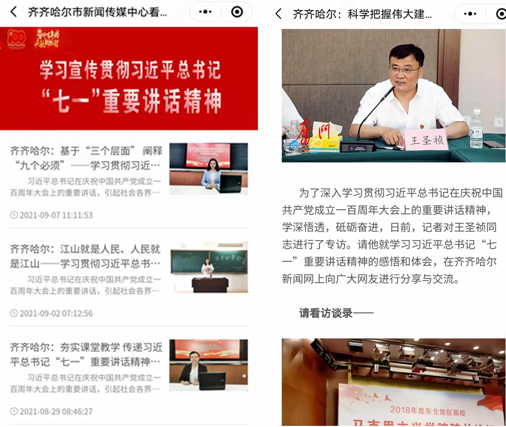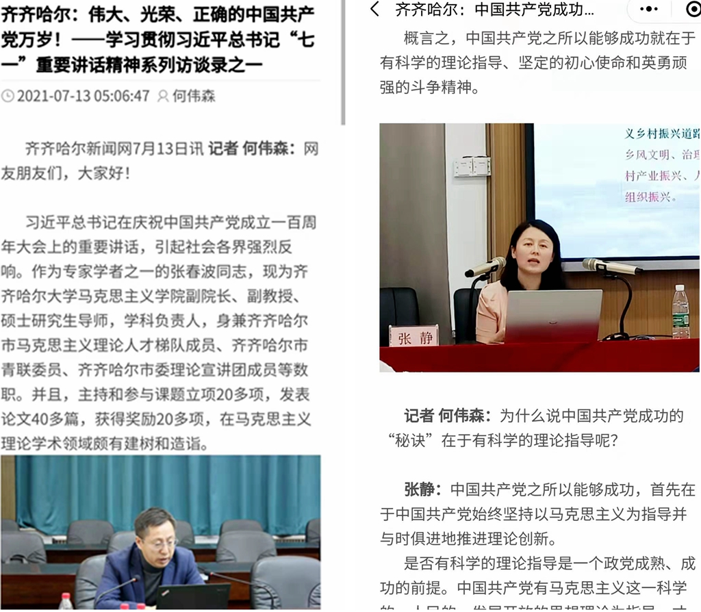 习近平总书记在庆祝中国共产党成立一百周年大会上的重要讲话,全面回顾了我们党100年来团结带领全国各族人民不懈奋斗走过的光辉历程和作出的伟大历史贡献。使广大人民置身于荡气回肠的奋斗过程,感慨所取得震古烁今的伟大成果。这是一份梳理党向历史和人民交出满意答卷的“总结单”,是新时代立足中国实际不断开创马克思主义新境界的“指南针”,是共产党人理想信念精神之钙的“鉴定书”。beats365马克思主义学院与齐齐哈尔新闻网合作,以专栏形式推出了10篇学习贯彻习近平总书记“七一”重要讲话精神系列访谈,累计阅读达万次。