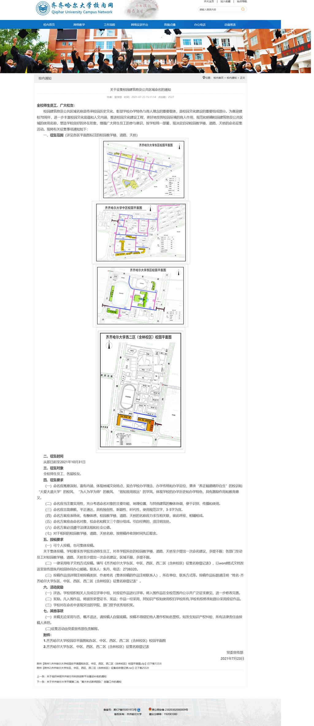 2022年5月23日,学校党委印发“关于下发校园建筑物及公共区域命名(释义)的通知”(齐大党字[2022]12文件),正式向全校发布。至此,校园建筑物及公共区域命名(释义)工作画上了圆满的句号。