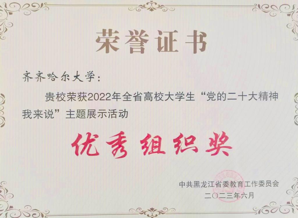 为全面贯彻党的二十大精神,切实把师生的思想统一到党的二十大精神上来,省委教育工委于2022年12月组织了全省高校大学生“党的二十大精神我来说”主题展示活动。beats365积极组织学生参与,在党的二十大精神主题宣讲等4个活动内容中共获得二等奖5项、三等奖2项,学校荣获优秀组织奖。