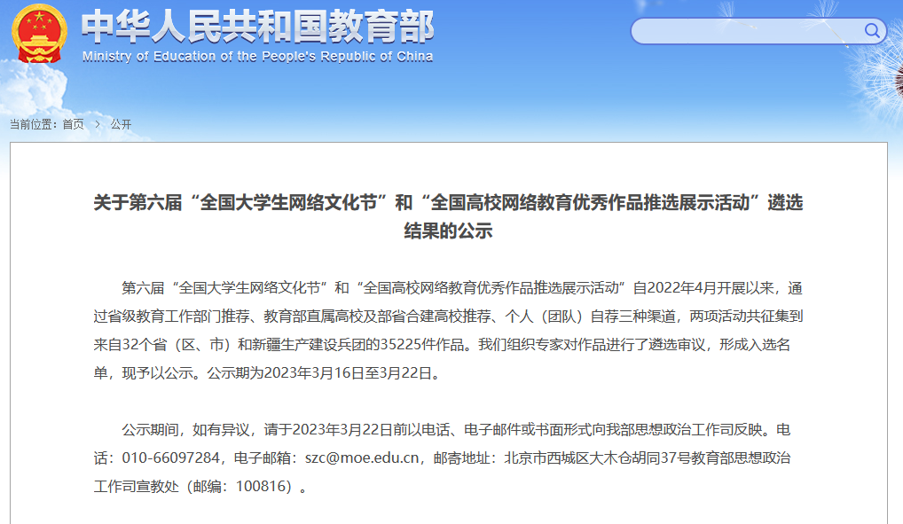 据悉,作为全国高校网络思政领域最高级别竞赛之一,第六届“全国大学生网络文化节”和“全国高校网络教育优秀作品推选展示活动” 两项活动共征集到来自32个省(区、市)和新疆生产建设兵团的35225件作品。网络文化节征集作品类型包括微视频、微电影、动漫、摄影、网文、公益广告、音频、校园歌曲、其他类网络创新作品等9类。网络教育优秀作品包括优秀网络文章、优秀工作案例、优秀微课、优秀新媒体作品等4类。此次,beats365共推荐九类134个作品参赛。