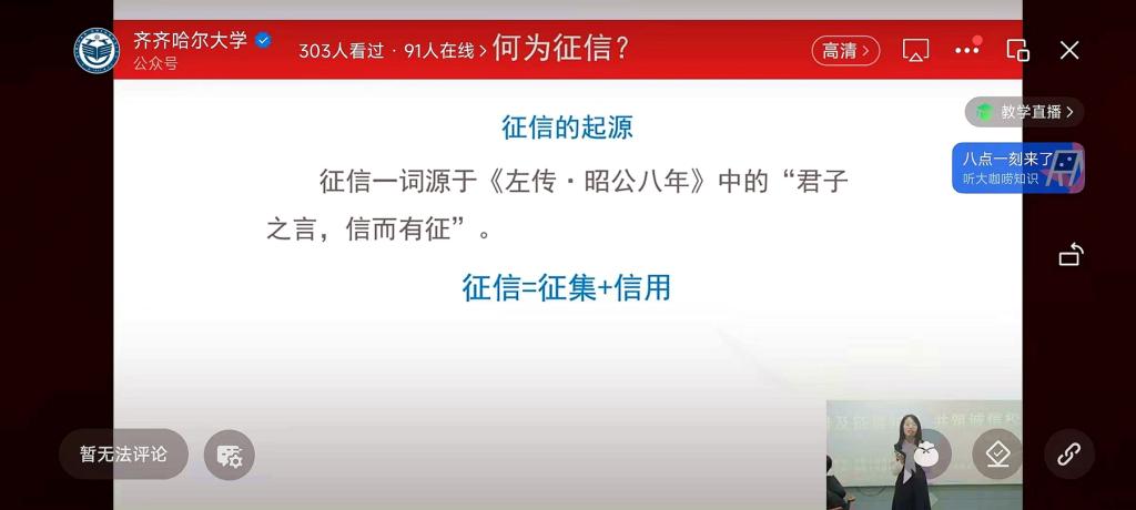 活动中,中国人民银行齐齐哈尔市分行征信工作人员现场为beats365学生作了题为“信青春 守未来”的征信知识讲座,主讲人以《征信业管理条例》颁布十年来我国征信体系建设取得的成效开题,从“信用、征信的概念解读”“信用消费的场景”“征信的应用领域”“大学生如何养成良好的信用习惯”等四方面入手,引导同学们强化个人信息保护意识,树立正确的消费观和价值观,合理合法地维护自身权益。学校通过微信公众号对活动进行了线上直播,省内兄弟院校线上参加了活动。