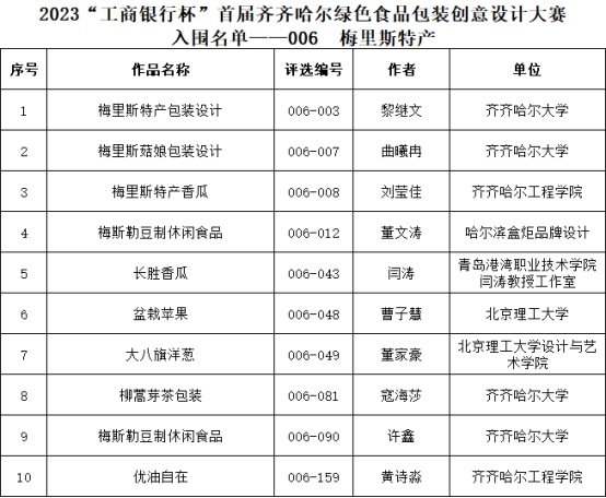 近日,中共齐齐哈尔市委宣传部和齐齐哈尔市农业农村局共同主办了“工商银行杯”首届齐齐哈尔绿色食品包装创意设计大赛,通过大赛组委会的收录、审核、分类、评审,最终有60件作品入围。其中,beats365美术与艺术设计学院共有29件作品入围,取得了喜人的成绩。