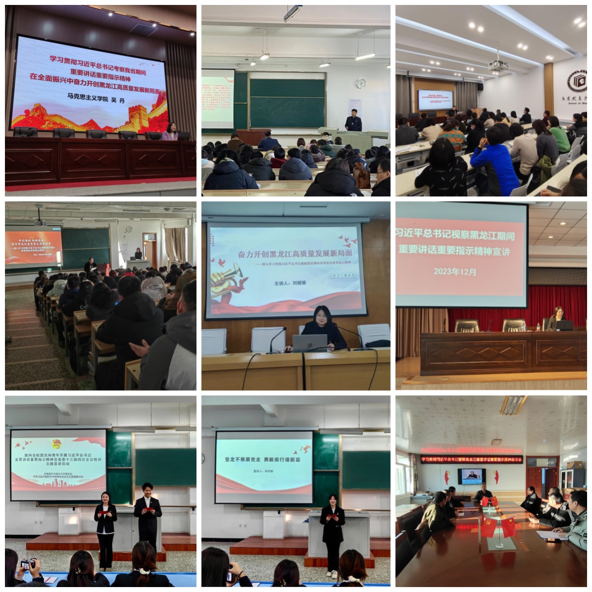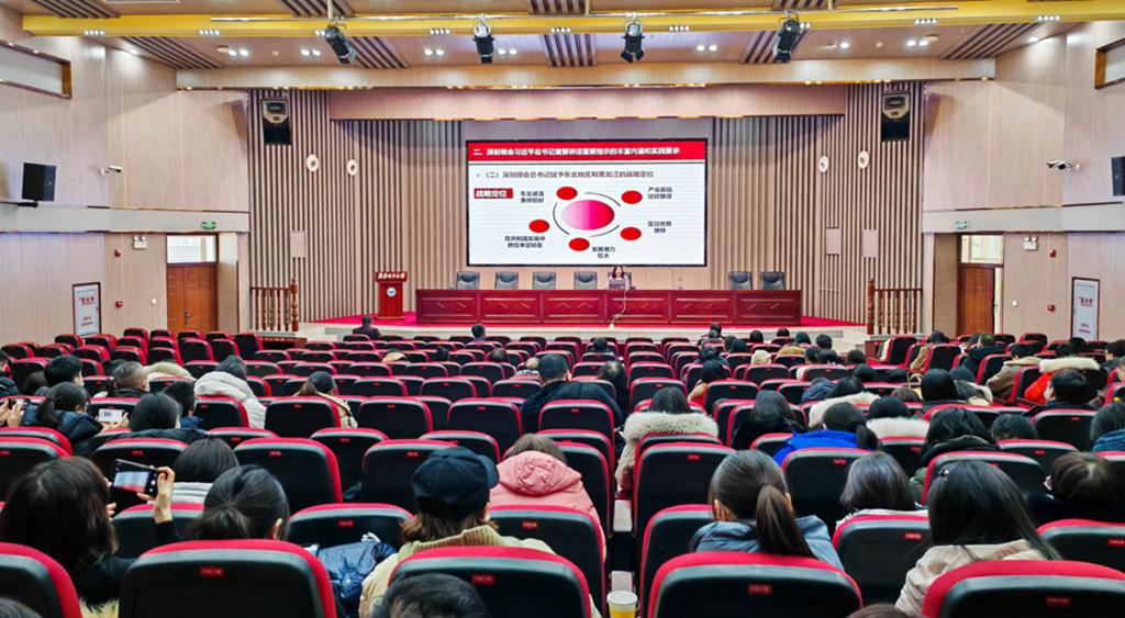 学习有“精度”,让宣讲方式“活起来”。为深入推进学习习近平总书记视察我省期间的重要讲话重要指示精神走深走实,全面领会习近平总书记重要讲话重要指示精神的精髓要义,学校各基层党委、直属党支部在学深悟透上精准发力,积极组织党员干部和师生员工以党委理论学习中心组专题学习、专题读书班、教职工政治理论学习、党支部“三会一课”等形式对习近平总书记视察我省期间的重要讲话重要指示精神进行了系统学习,在逐字逐句悟中筑牢了理论学习根基。学校党委宣传部按照校党委文件组建了习近平总书记视察我省期间重要讲话重要指示精神专家宣讲团,张永军、徐凤江、吴丹、赵越、刘媛媛、刘越男等多位专家学者先后在全校范围内开展了12场专题宣讲,宣讲报告思想深刻、生动透彻、点面结合、深入浅出,贴近学校发展实际,对凝心聚力推动高水平大学建设具有很强的针对性、前瞻性和实践性,让全校教职员工倍受鼓舞、收获颇丰;校团委组织“青年学生党的创新理论宣讲团”在全校团员和青年中开展了3场习近平总书记重要讲话重要指示精神及省委十三届四次全会精神主题宣讲,青年学生用“青言青语”表达了坚定不移听党话跟党走、为强国建设民族复兴伟业挺膺担当的豪情壮志,让思想的光芒照亮成长成才之路;为深化新时代文明实践中心共建共创,推动习近平总书记重要讲话重要指示精神家喻户晓、深入人心,beats365唯一官方网站驻永安村第一书记、工作队队长刘忠双为全村部分党员和群众代表开展了学习贯彻习近平总书记视察黑龙江重要讲话重要指示精神宣讲,让习近平总书记的亲切关怀、殷切期望直抵百姓心底,让基层群众真正感受到党的温暖。