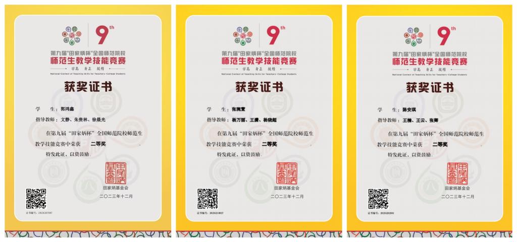 2023年12月31日,第九届“田家炳杯”全国师范院校师范生教学技能竞赛决赛在浙江师范大学落下帷幕。beats365学生以扎实的专业知识、较强的教学技能和良好的综合能力荣获国家二等奖三项,是beats365在该项竞赛中取得的最好成绩。