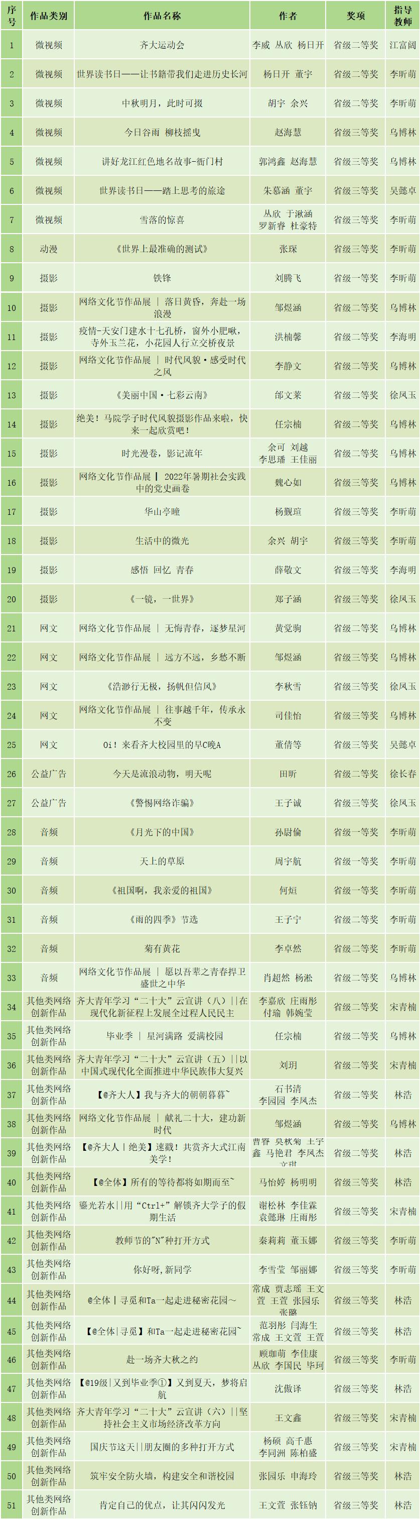 beats36552项作品在第七届“全省大学生网络文化节”获奖,分别是一等奖4项,二等奖20项,三等奖27项。其中,环艺201刘腾飞同学的《铁锋》获全省摄影类作品一等奖,朝鲜语231班孙尉倫同学的《月光下的中国》、播主222班周宇航同学的《天上的草原》、音乐表演232班何烜同学的《祖国啊,我亲爱的祖国》分别获得全省音频类作品一等奖;由乌博林、李昕萌老师提交的作品《诗词“邂逅”大美校园,沉浸时令节气之美》获得“全省高校网络教育优秀作品推选展示活动”优秀工作案例二等奖。本次获奖作品数量和质量均有新的突破,充分展现beats365在繁荣网络文化、推进高校网络思政育人工作上取得的成效。