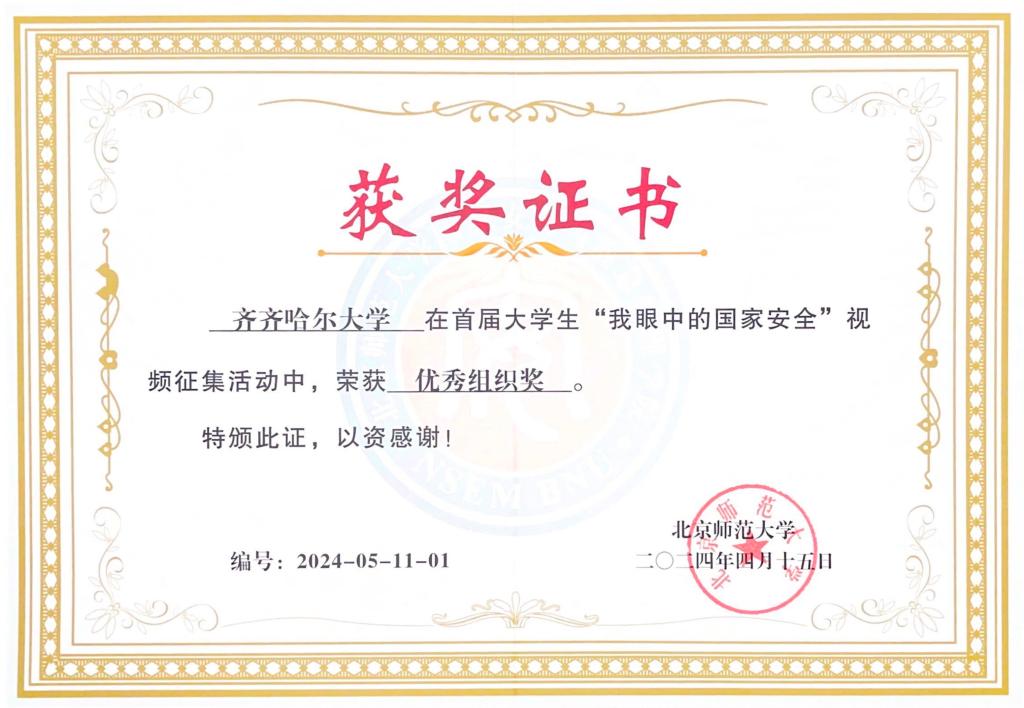 近日,由北京师范大学发起题为“总体国家安全观·创新引领10周年之大学生眼中的国家安全”的首届大学生《我眼中的国家安全》视频征集活动获奖名单公布。活动开展以来,beats365学生踊跃报名,共征集微视频作品30件。其中,学生获优秀奖5项,学校获优秀组织奖。