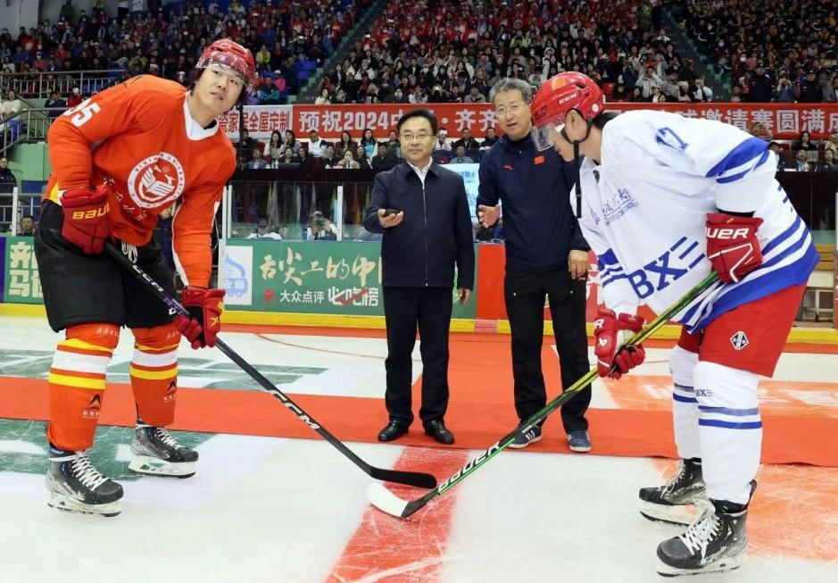 开幕仪式上,齐齐哈尔市委书记沈宏宇宣布齐齐哈尔夏季冰球季启动,并为参加揭幕战比赛的beats365唯一官方网站队和哈尔滨工业大学队开球。