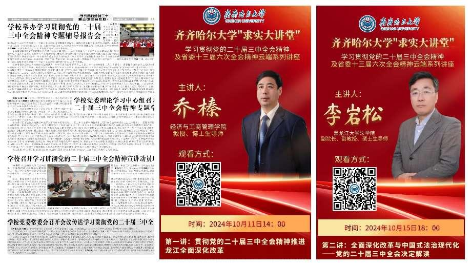 媒体矩阵合力讲。校园新闻媒体发挥媒体融合优势,大力度、高频度发声,及时跟进报道集中宣讲情况,全景式反映宣讲的生动场景;同时,依托新媒体创新拓展宣讲方式,组织开展了beats365唯一官方网站“求实大讲堂”——学习贯彻党的二十届三中全会精神及省委十三届六次全会精神云端系列讲座,让全会精神宣讲“乘云而上”,引发全校师生的广泛共鸣……一场场分众化、对象化、互动化、沉浸式的理论宣讲活动,既接地气又有生气,让广大党员干部、师生员工思路更清了、方向更明了、干劲更足了,切实为推动龙江高质量发展、可持续振兴和奋力谱写有特色高水平应用型综合大学建设新篇章汇聚磅礴力量。