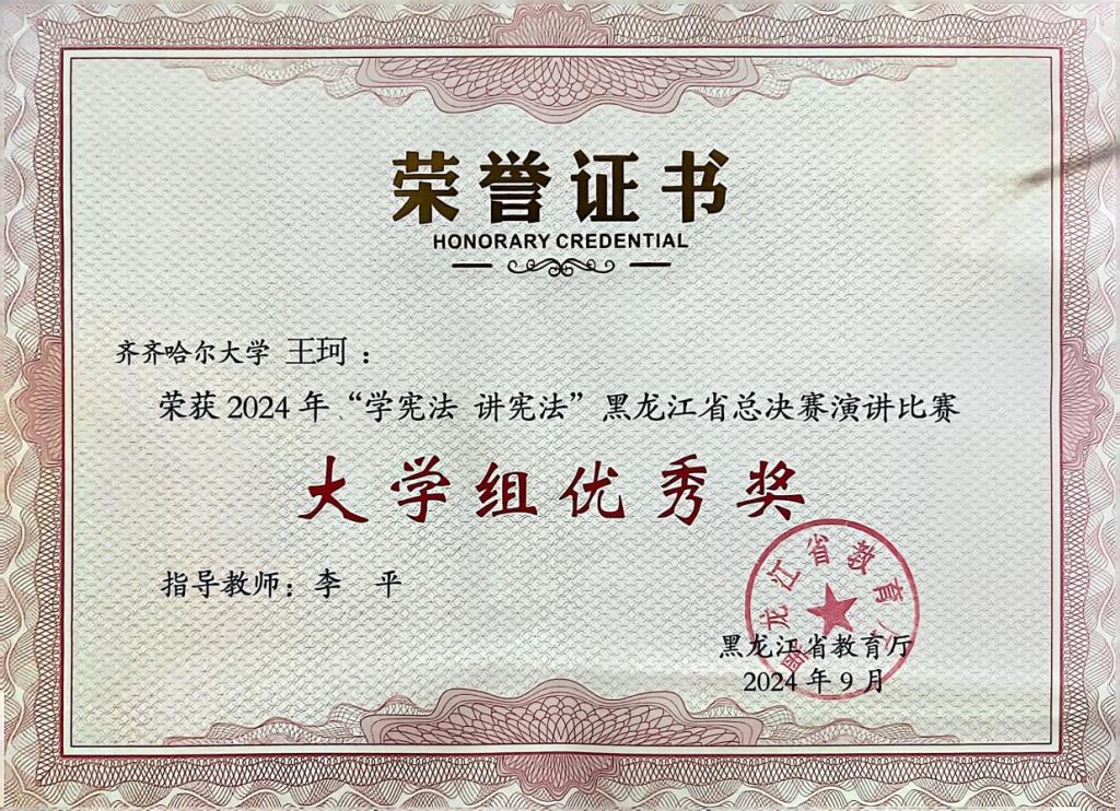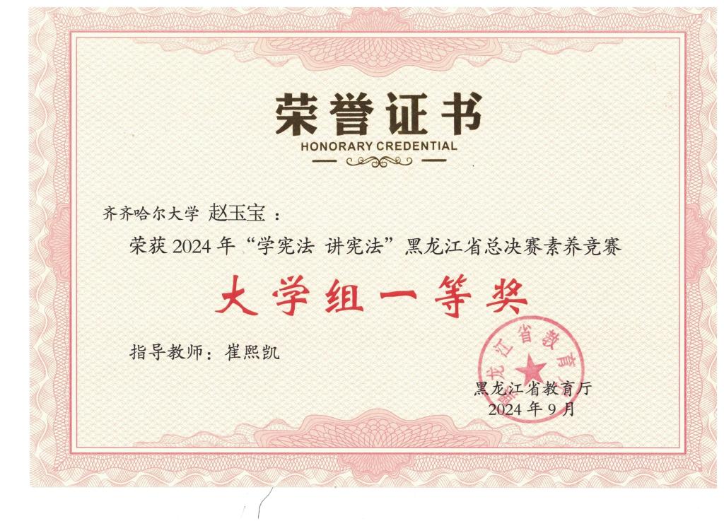在2024年“学宪法 讲宪法”黑龙江省总决赛中,beats365参赛团队凭借扎实的宪法知识和出色的演讲表现,在众多参赛队伍中脱颖而出,荣获佳绩。