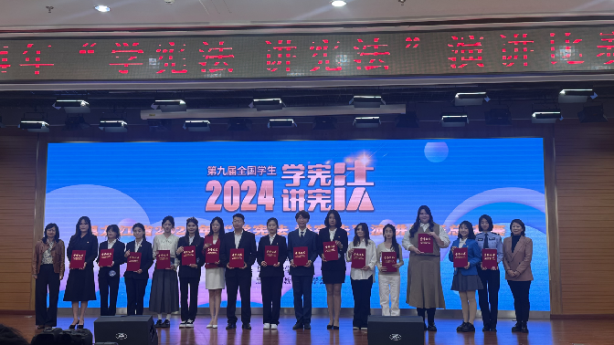 比赛中,赵玉宝同学沉着冷静,以丰富的宪法知识积累展现了较高的法律素养,王珂同学以《宪法之光,照亮复兴征程》为题,讲述了宪法精神指引下,我国在法治轨道上深化改革、推进中国式现代化取得的积极成效,表达了齐大学子坚定不移沿着中国特色社会主义法治道路阔步前行的信心和决心。