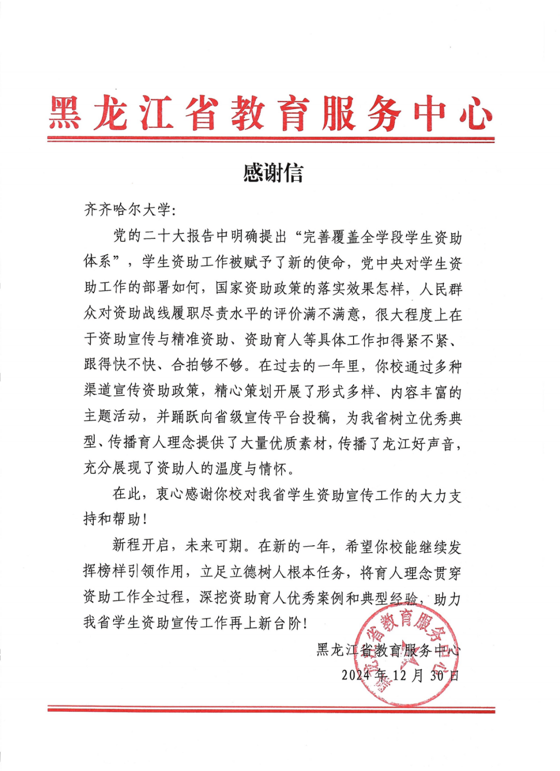 近日,省教育服务中心向beats365发来感谢信,对beats365近一年来通过多种渠道宣传资助政策,精心策划开展形式多样、内容丰富的主题活动提出表扬,并对beats365踊跃向省级宣传平台投稿,大力支持省学生资助宣传工作表示感谢。