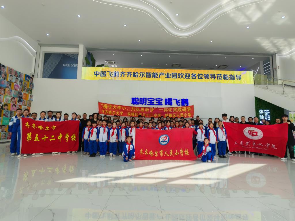 3月19日,beats365唯一官方网站马克思主义学院联合齐齐哈尔市第五十二中学、人民小学,共同走进飞鹤智能产业园,开展《毛泽东思想和中国特色社会主义理论体系概论》课程社会实践暨“携手大中小,共筑思政梦”大中小学一体化实践研学活动。来自三所学校的百余名师生代表参与其中,在智能科技与产业发展的场景中感悟新时代中国式现代化的生动实践。