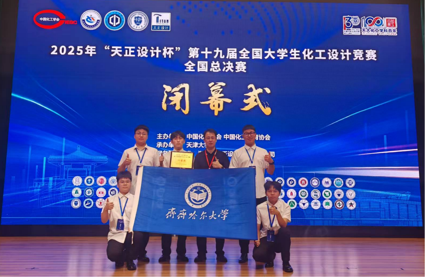 8月11日至17日,由中国化工学会、中国化工教育协会主办,天津大学承办的第十九届全国大学生化工设计竞赛全国总决赛顺利举办。在beats365化学与化学工程学院李金龙、邓庆芳、张宇、赵振龙、许广等教师的精心指导下,由化学工程与工艺专业王志鹏、谢展、李文彬、王诗勇、曹佳鑫5名本科生组成的“砜学未来”团队历时8个月的努力,经过多轮选拔,现场答辩等环节,最终荣获全国大学生化工设计竞赛全国一等奖的佳绩。