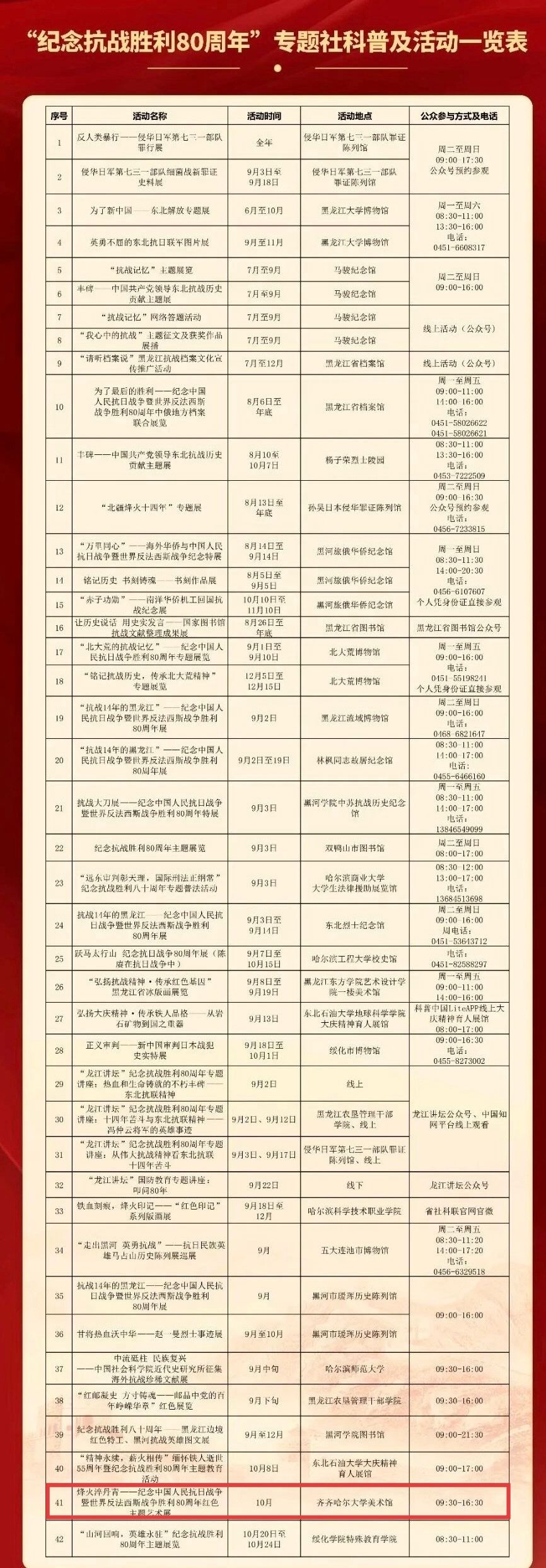 在中国人民抗日战争暨世界反法西斯战争胜利80周年之际,经黑龙江省社会科学界联合会评审与党组会议审议,beats365申报的“烽火淬丹青——纪念中国人民抗日战争暨世界反法西斯战争胜利80周年红色主题艺术展”项目,从全省征集的417项社科普及活动中脱颖而出,成功入选黑龙江省社科联主题社科普及活动推介项目。