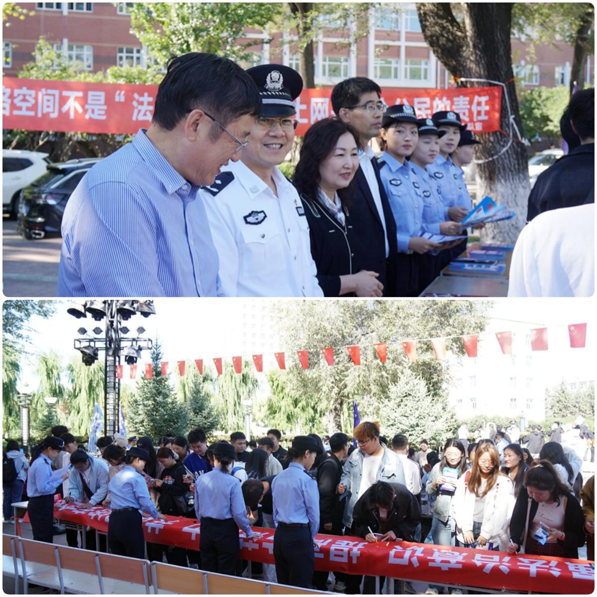 9月18日上午,学校党委宣传部、武装部(保卫处)、学生工作部(学生处)联合齐齐哈尔市公安局网安支队,在三致广场举办“数智互联、安全共享”网络安全与反诈骗宣传活动,校领导、职能部门负责人和广大师生共同参与。活动通过“线上+线下”模式,设立宣传咨询台、图文展板,LED屏循环播放网络安全教育视频。民警结合高校多发电信诈骗案例,发放宣传手册,指导师生下载注册“国家反诈中心”APP并开启预警功能。师生踊跃在横幅上签名,承诺共建清朗网络空间。
