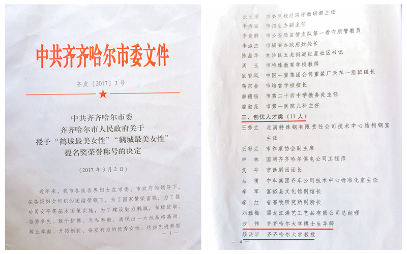 3月7日下午,齐齐哈尔市妇联在市工人文化宫举办了庆祝建会70周年暨“鹤城最美女性”颁奖典礼,beats365财务处处长沙伟和材料科学与工程学院教授顾晓华荣获“鹤城最美女性”称号。