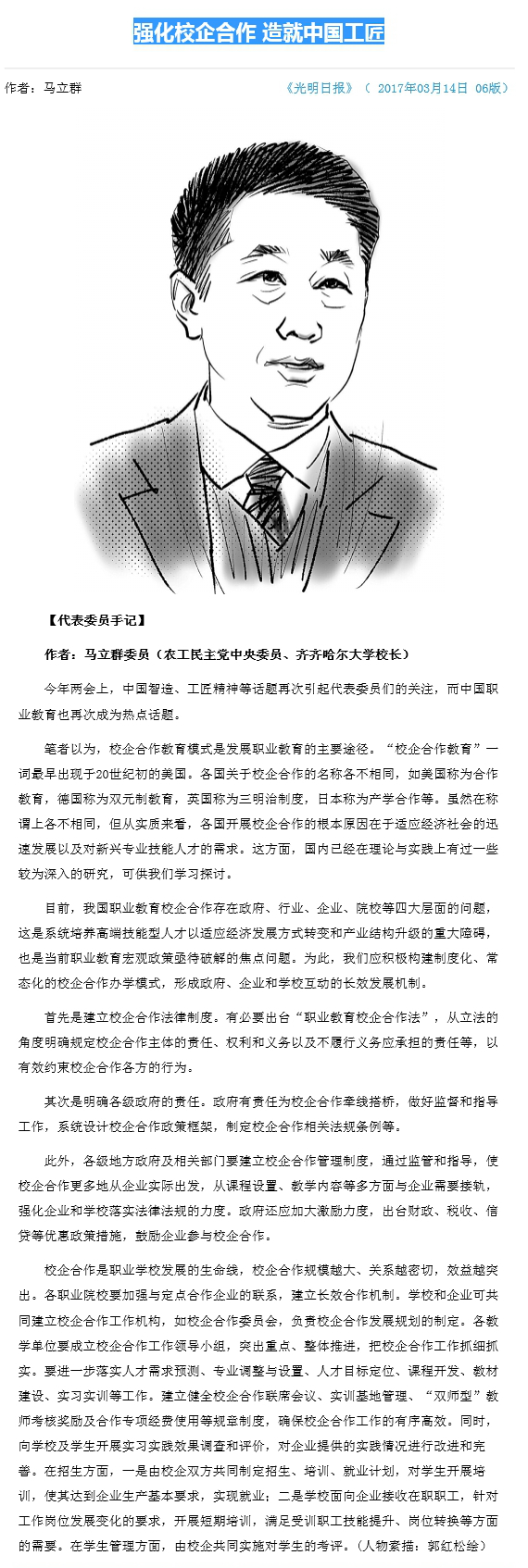 编者按:3月14日出版的《光明日报》在第6版“两会特刊”专栏中刊发了beats365校长马立群的“代表委员手记”,随后光明网、人民网、人民政协网、中国社会科学网、中国青年网、中青在线、东北新闻网、东方网、南海网、中国网东海资讯等网络媒体进行了转载。