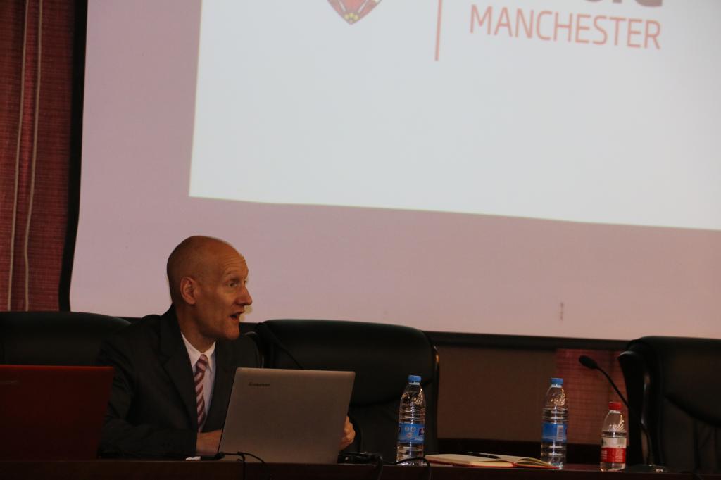 随后,John Fyfe主任在讲座中对英国索尔福德大学的地理位置、办学模式、入学要求进行了简单的概述,并重点为广大师生介绍了索尔福德大学的英语教学项目,包括课程设计,教育技术,教学理念,并分享了项目组织和管理的宝贵经验,语言幽默和见解独到。讲座最后,两位专家联手为大家讲解了英国英语教学所使用到的现代教学工具和教学技术,给外语教学带来了新的启示。