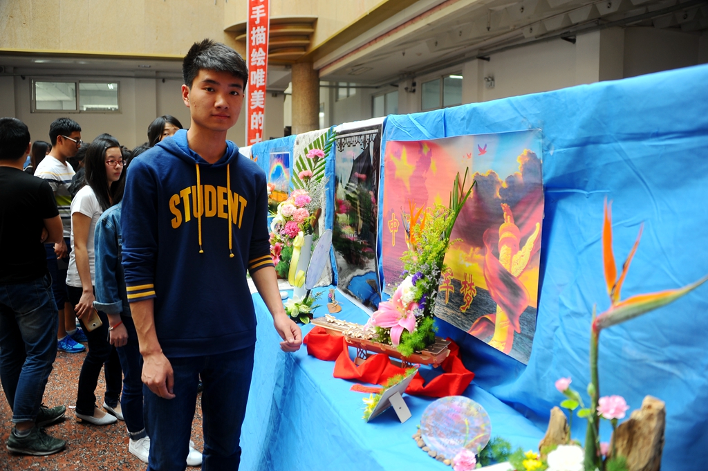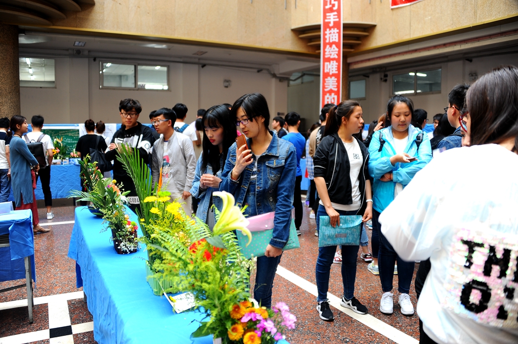 参赛者于5月31日上午在西主教学楼进行现场制作,beats365生命科学与农林学院园林系教师郭彦萃进行了现场指导,下午在西区主楼阳光大厅进行展出。据悉,自6月1日至6月7日,所有参赛作品都将从主题表现、立意构思、命名、造型、色彩、技巧、选材综合效果与创新等方面接受广大师生评审,最终前30%的作品将获得一等奖、二等奖、三等奖。