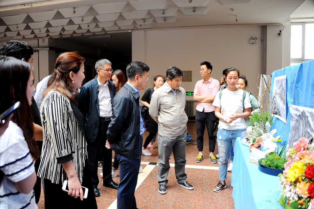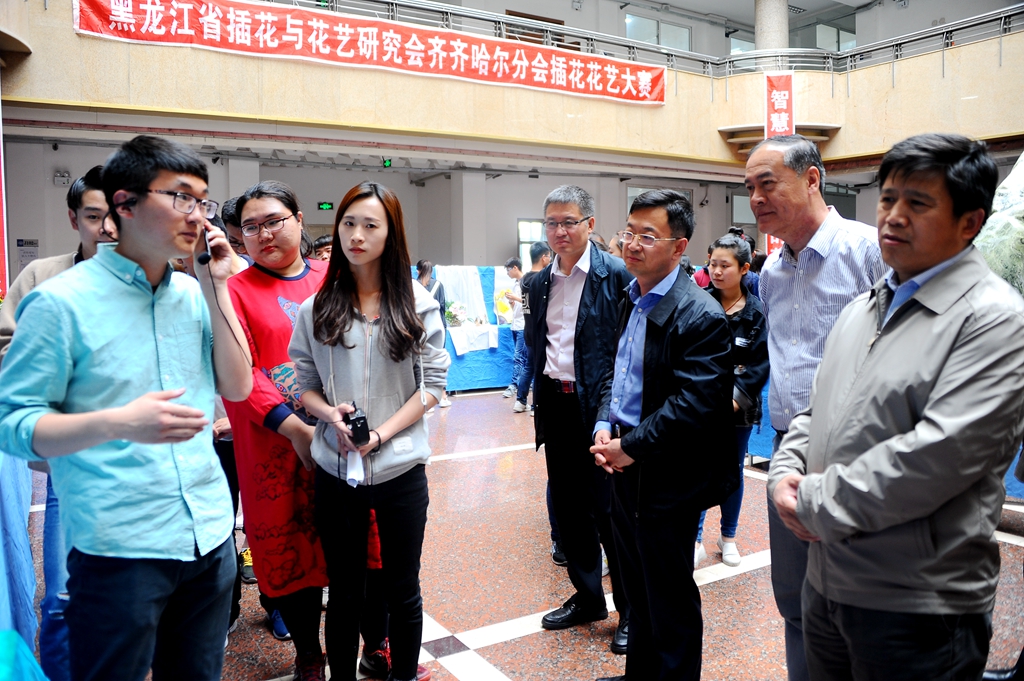校领导盖元臣、齐宏伟、郑喜群、王刚、姜国庆到现场观看作品,听取参赛学生关于插花作品创意的说明,并给予鼓励。学校办公室、学生工作部(学生处)、校团委,生命科学与农林学院等部门、学院领导及园林系师生观看了比赛。
