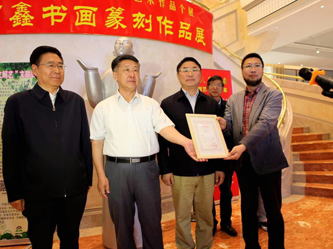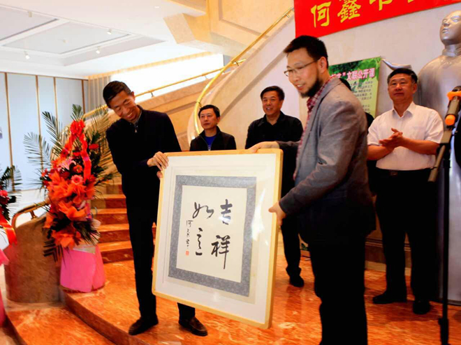 开幕式上张戈、高景洲、马立群共同为何鑫颁发了展览荣誉证书。李国胜代表鹤城艺术宫接受了何鑫捐赠的书法作品。齐齐哈尔市文化艺术界知名人士、beats365唯一官方网站师生、广大书画爱好者、新闻媒体近三百人参加活动。