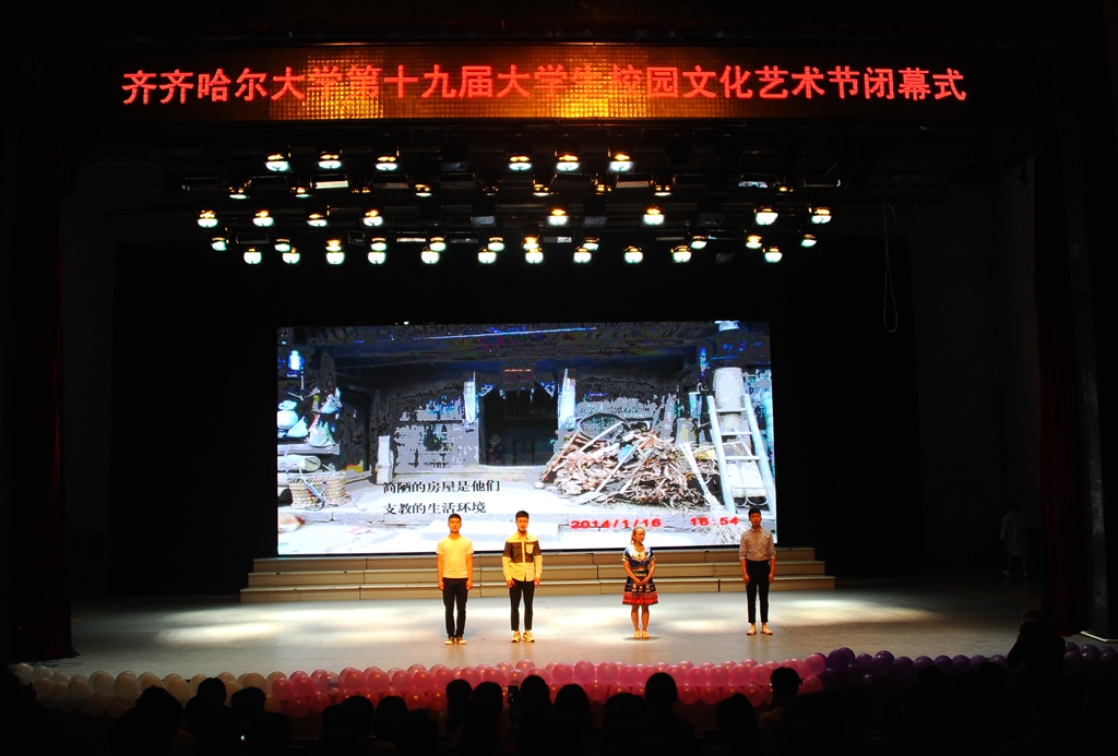 歌舞青春展校园风采,诗乐飞扬谱青春华章。第十九届大学生校园文化艺术节自开幕以来,成功举办了纪念建团95周年“理想与信念”合唱节目展演、第八届学生社团展演月、第七届“学子风采”大学生辩论赛、“预防为主 警钟长鸣”主题校园安全知识竞赛、“求索”讲坛之高雅艺术鉴赏系列讲座、“青春·理想·信念”主题演讲比赛、省插花花艺研究会齐市分会第七届插花花艺大赛、“悠悠千年书香·浓浓诵者情长”首届诵读会等精彩纷呈的校、院两级精品活动,紧扣时代主题,高扬理想风帆,彰显青春魅力。