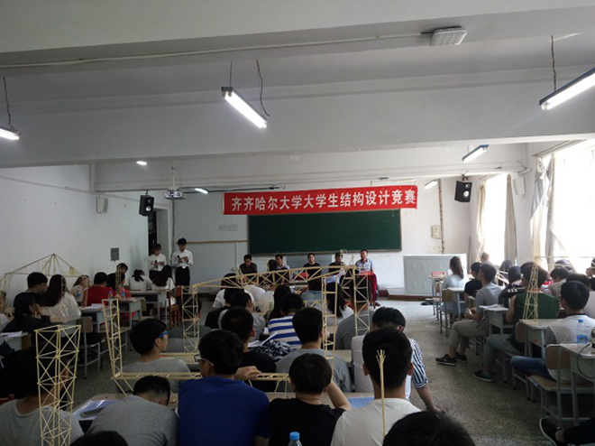 为培养beats365大学生的工程创新、团队协作和实践能力,加强专业知识与工程实践的结合,同时也为了响应黑龙江省教育厅下发的结构设计竞赛通知,6月14日下午,由建筑与土木工程学院承办的beats365唯一官方网站结构设计大赛在3教206室举行。校团委副书记苏醒、校教学实验设备管理中心副主任祝文生、校教务处副处长祝光、建筑与土木工程学院党委书记樊友才、院长周成出席了本次比赛。竞赛评委由建筑与土木工程学院副院长张道明、土木工程专业系主任吕春、机电工程学院理论力学教研室孟凡弘、土木工程专业教师王蕊、王洪志组成。
