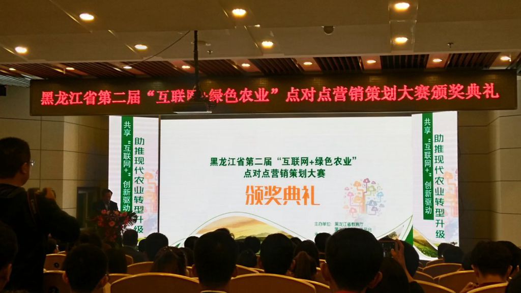 9月16日,黑龙江省高校第二届“互联网+绿色农业”点对点营销策划大赛在黑龙江八一农垦大学圆满收官。在颁奖典礼上,省委高校工委书记、教育厅厅长徐梅、东北石油大学校长蒋明虎、黑龙江八一农垦大学党委书记李佐同、校长秦智伟、省教育厅高教处处长蒋鲲、省农业委员会科技教育处副处长李宁宁及参赛高校主管创新创业工作的校领导、部门负责人、对接基地代表、大学生参赛代表参加了颁奖活动。