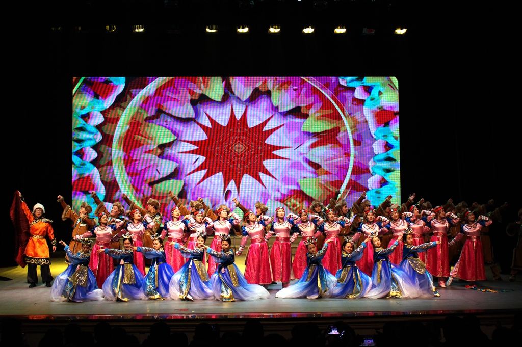 好歌过后,具有很强的视觉冲击力的舞蹈表演则是让师生们大呼过瘾。舞蹈《腰玲》的表演者们身着别具满族民族特色的服饰,腰间的金玲随着表演者扭动的腰肢发出阵阵清脆动人的铃声;群舞《勇敢的鄂伦春》则是完全由男演员演出,舞姿刚劲豪放,散发着来自鄂伦春男人的刚猛之气。最终,参演的所有演员共聚一台带来舞蹈《欢腾》作为结尾,将本场演出推向了高潮,赢得了师生们雷鸣般的掌声。演出虽然结束了,但师生们沉浸在浓郁悠长的民族歌舞中,久久不愿离去。
