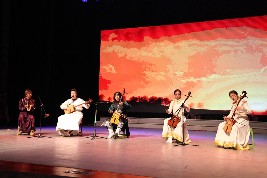 蒙古族世世代代在草原上繁衍生息,创造出了特色鲜明的民族文化。青山、王娜、银雪等人共同演奏了马头琴乐曲《蒙古骏马》和《英雄牧马人》。马头琴是适合演奏蒙古古代长调的最好的乐器,悠扬的琴声沁人心脾,观众们好似置身于广阔无垠的大草原,带着香草和牛奶气息的微风拂过脸庞,令人流连忘返。