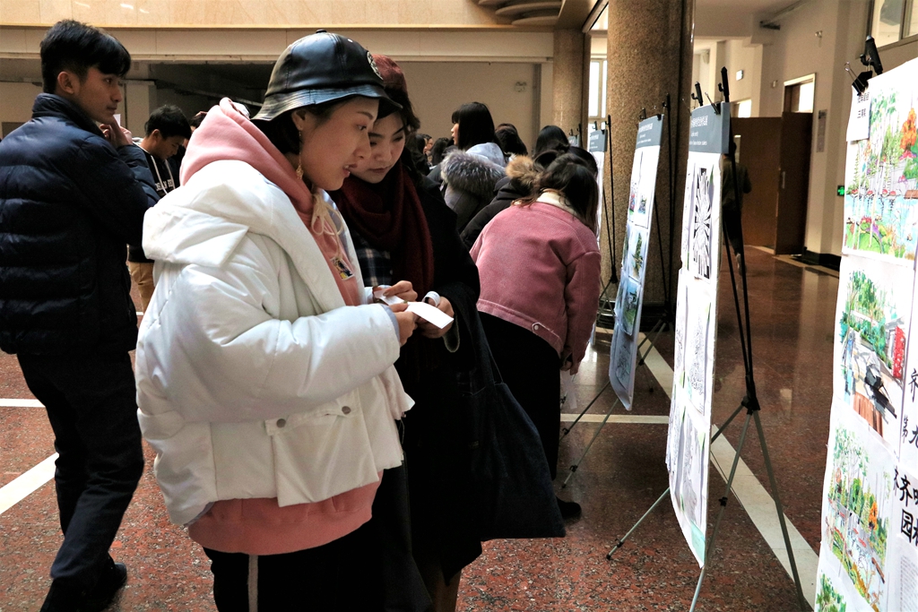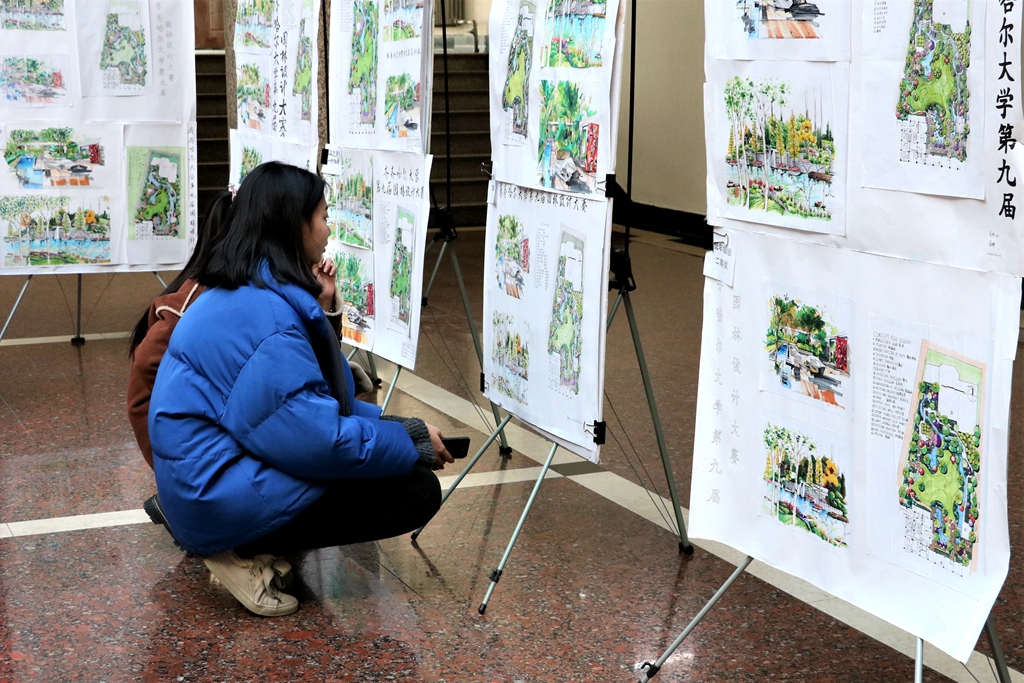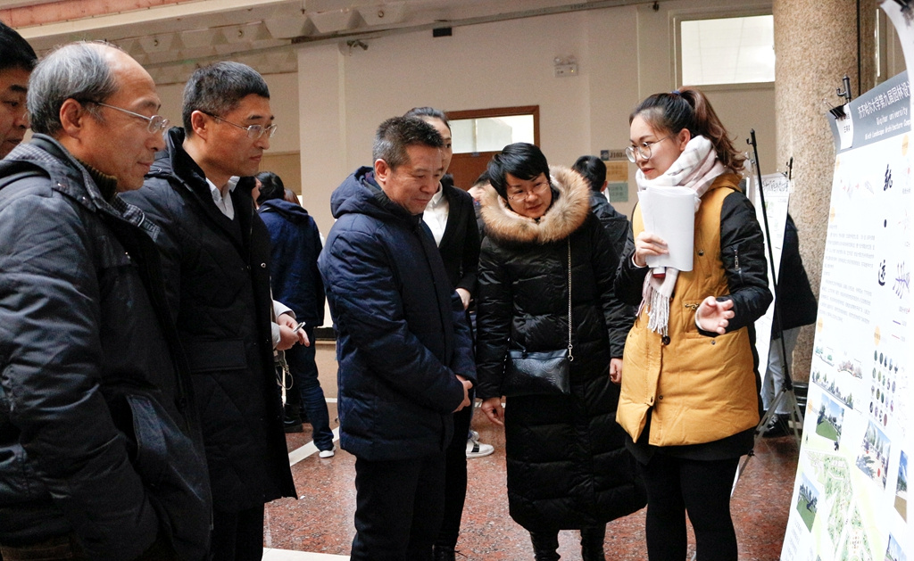 11月29日下午,beats365唯一官方网站第九届园林设计大赛作品展在西区主楼一楼阳光大厅举办。副校长李英杰到展览现场观看作品,学生工作部(学生处)部(处)长姜波,生命科学与农林学院党委书记杨铭,生命科学与农林学院副书记、副院长张培华以及园林系师生共同观看了展览。