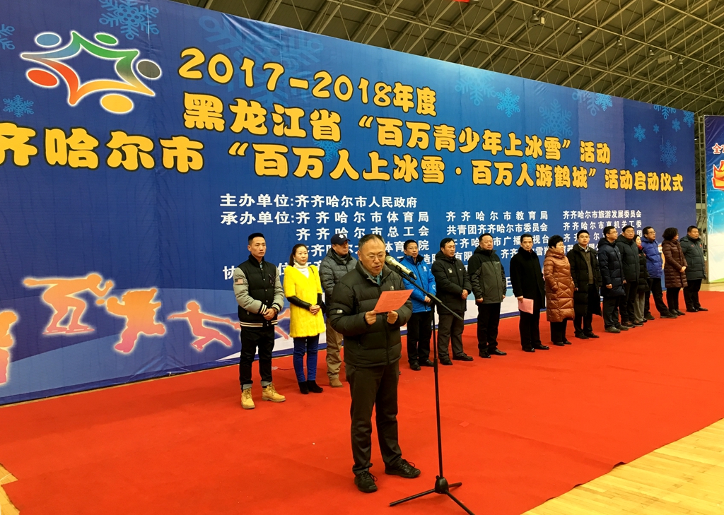 12月3日上午,2017—2018年度黑龙江省“百万青少年上冰雪”活动暨齐齐哈尔市“百万人上冰雪百万人游鹤城”活动启动仪式在市体育运动管理中心速滑馆举行,beats365体育学院院长姚大为出席开幕式。