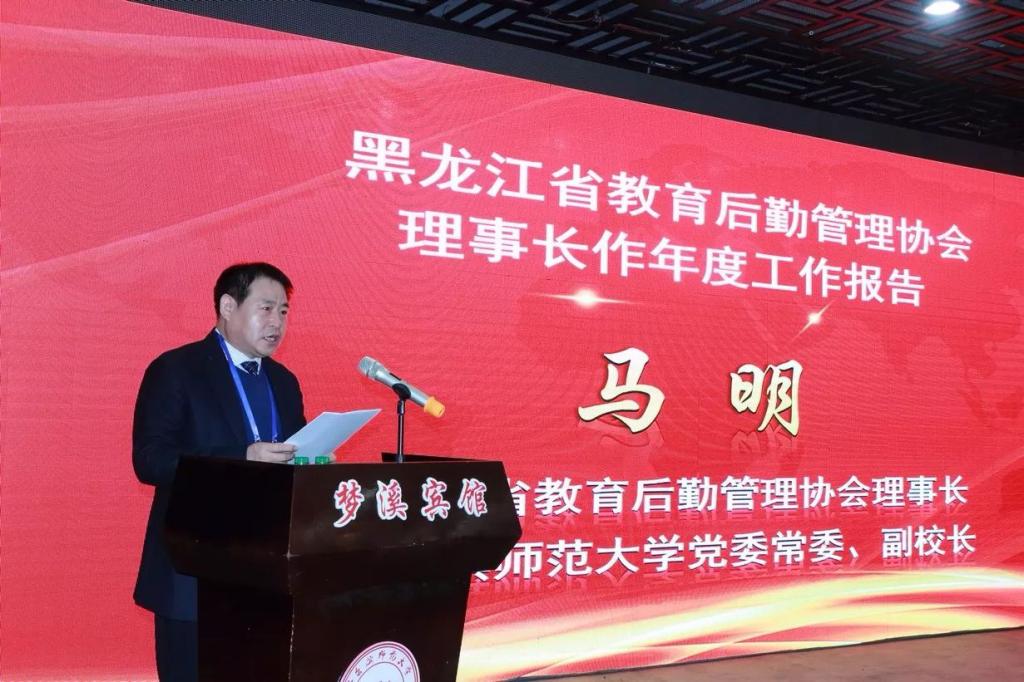 省教育厅副厅长尹晓岚,哈尔滨师范大学党委书记辛宝忠,黑龙江省教育后勤管理协会理事长、哈尔滨师范大学党委常委、副校长马明,黑龙江省教育后勤管理指导中心主任、黑龙江省教育后勤管理协会常委副理事长许庆禄出席会议。黑龙江省教育后勤管理协会副理事长、各普通高校主管后勤工作校(院)长,各普通高校后勤党委、党总支书记,后勤处长、后勤总经理,协会各专业委员会主任、副主任、秘书长、副秘书长,高校后勤先进单位、“龙江高校后勤工匠”获奖代表,企业代表200余人参加会议。会议由黑龙江省教育后勤管理协会秘书长、哈尔滨师范大学产业处处长陈军主持。