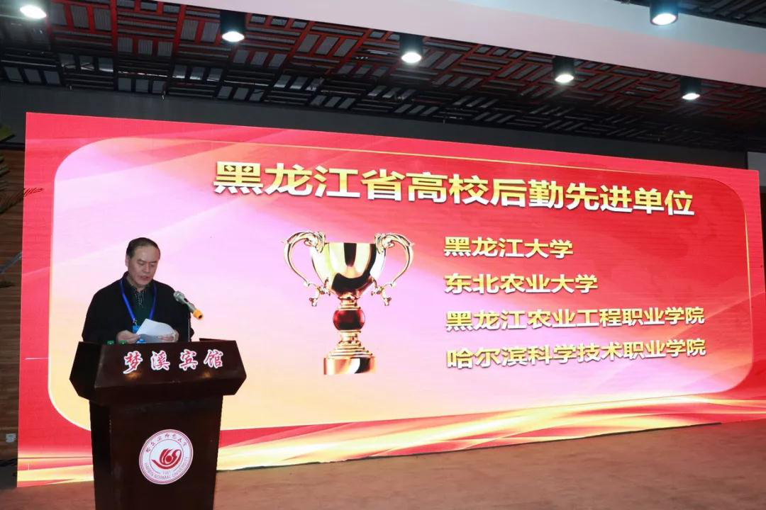 黑龙江省教育后勤管理协会副理事长、beats365唯一官方网站副校长王刚同志宣读关于全省“高校后勤先进单位”和“龙江高校后勤工匠”的决定并进行表彰。