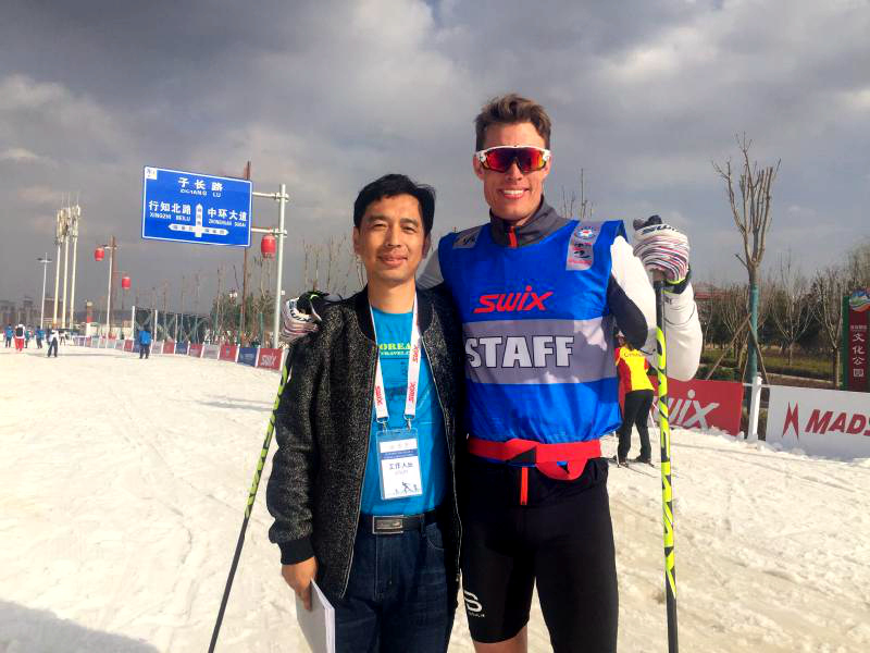 (李金辉老师与挪威运动员、平昌冬奥会三金得主克莱博合影)