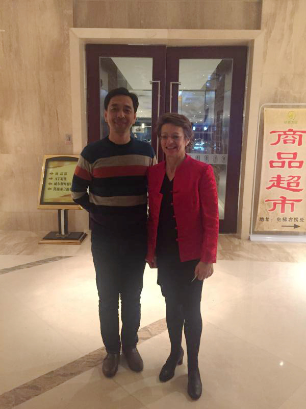 (李金辉老师与国际滑雪联合会秘书长莎拉·路易斯合影)