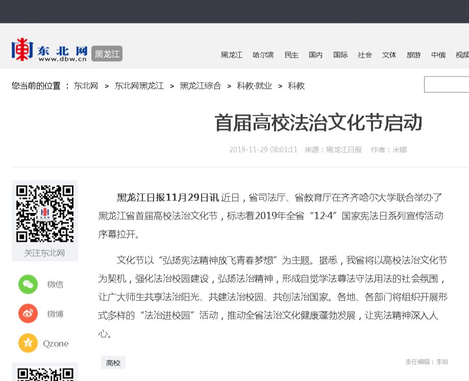 【黑龙江网】黑龙江省首届高校法治文化节启动