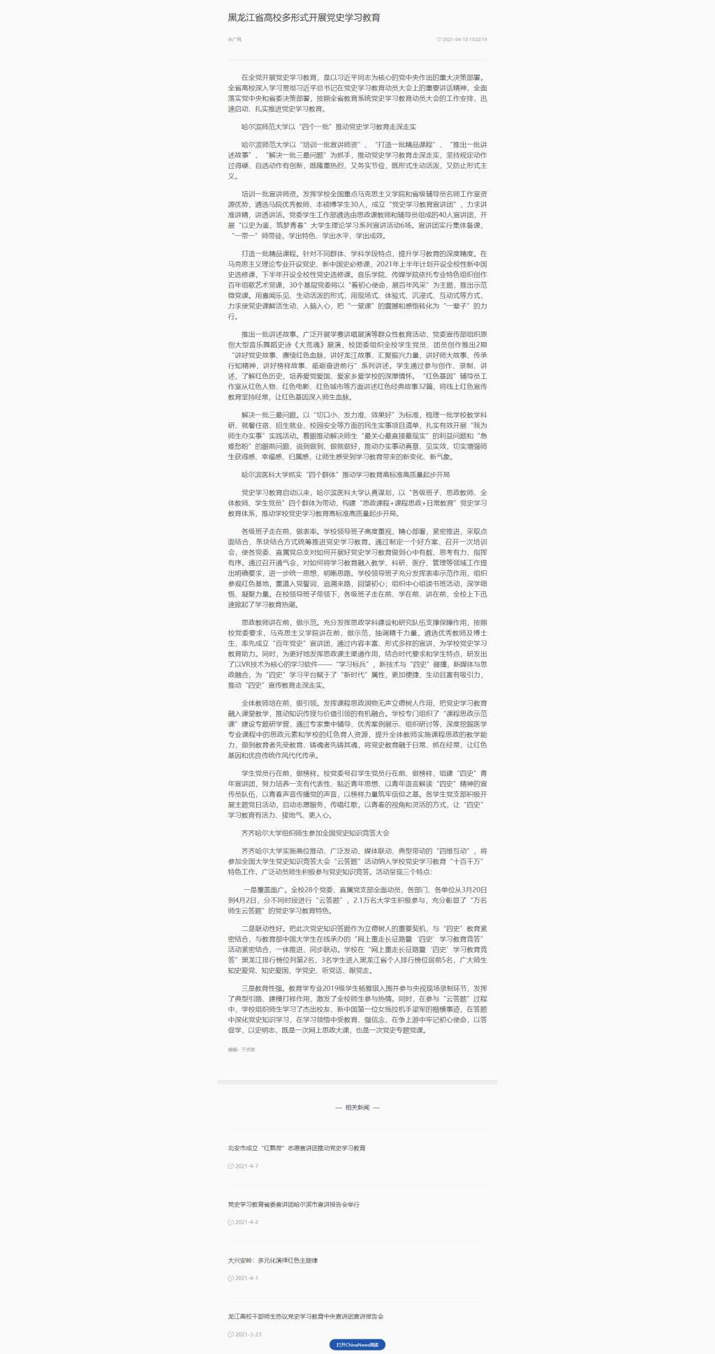 【人民日报】黑龙江省高校多形式开展党史学习教育