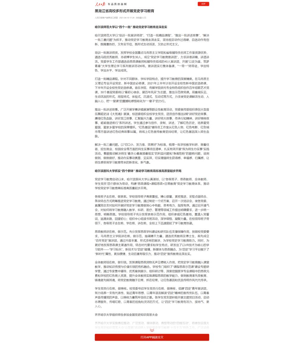 【人民日报】黑龙江省高校多形式开展党史学习教育