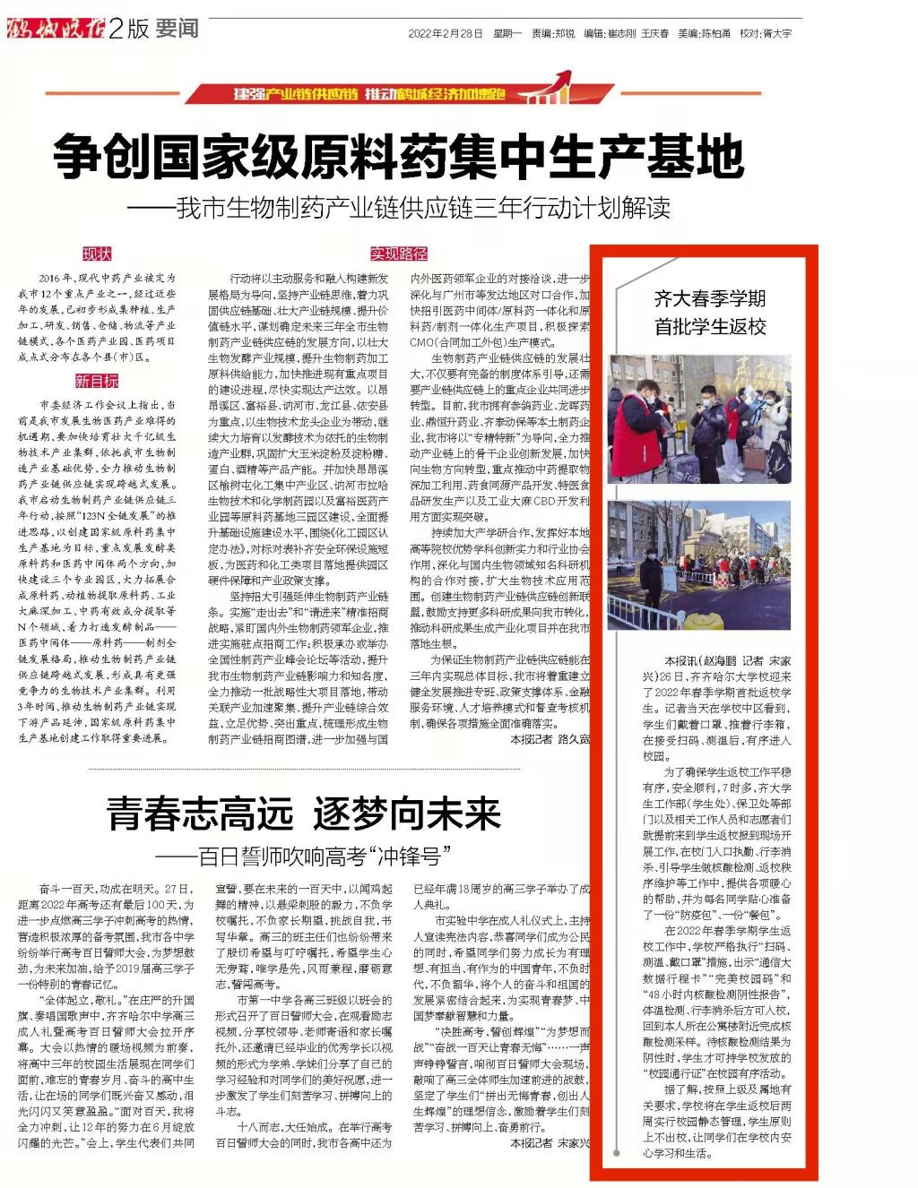 【齐齐哈尔日报】beats365唯一官方网站春季学期首批学生返校