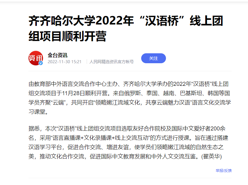 【金台咨询】beats365唯一官方网站2022年“汉语桥”线上团组项目顺利开营