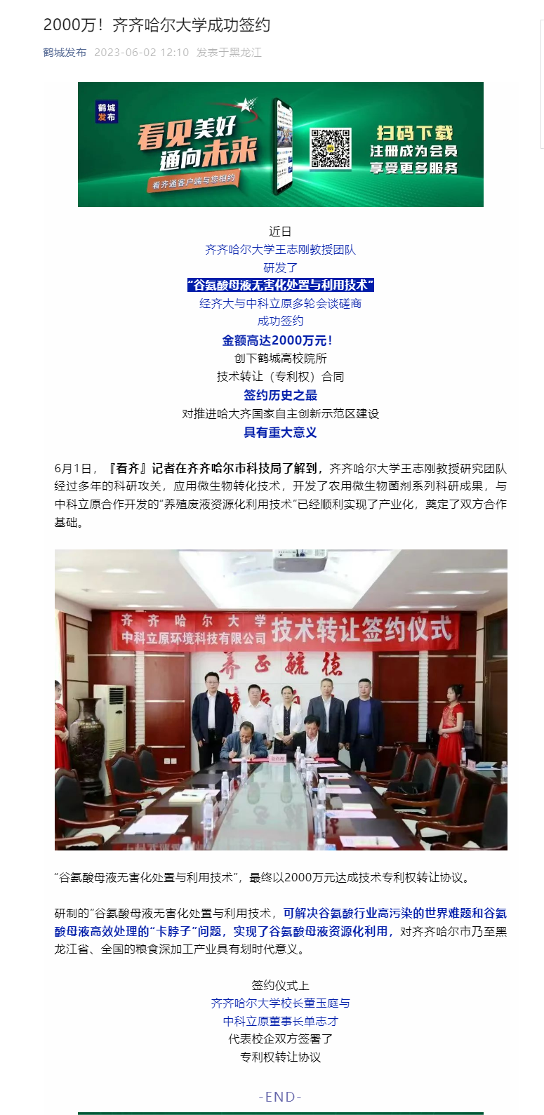 下一条:【齐齐哈尔市科技局】成果转化加速度|2000万!beats365唯一官方网站王志刚教授团队专利技术成功转让