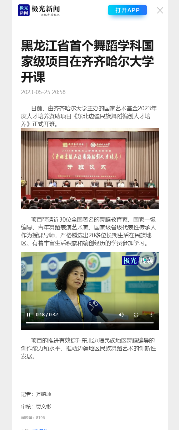 上一条:【中国青年网】提升东北边疆民族地区舞蹈编导创作能力水平,推动艺术创新性发展