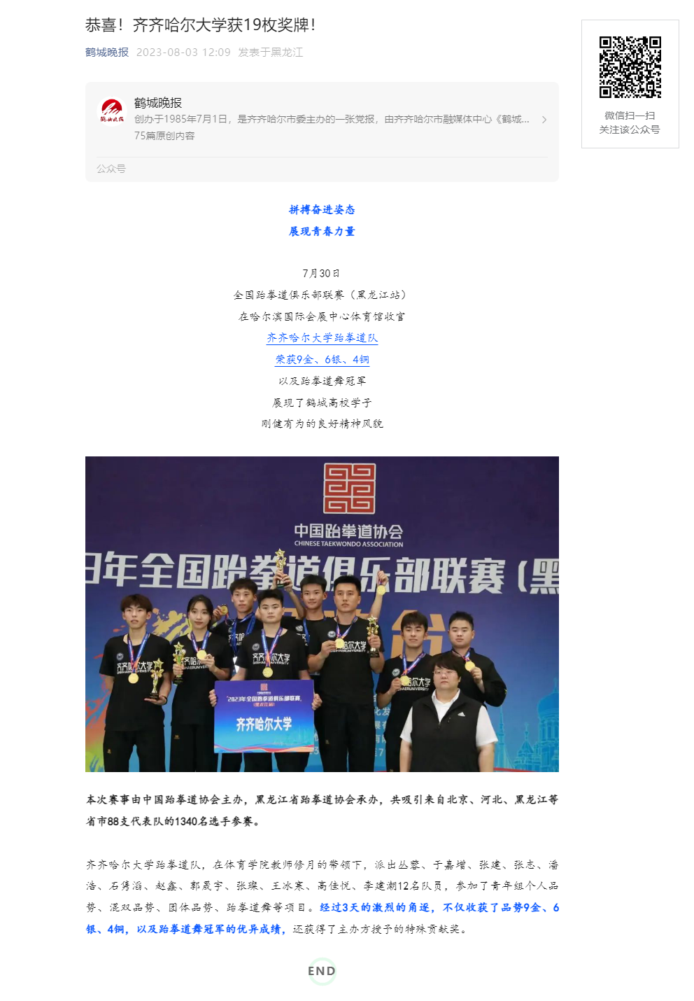 上一条:【齐齐哈尔日报】齐大在全国跆拳道俱乐部联赛中获佳绩