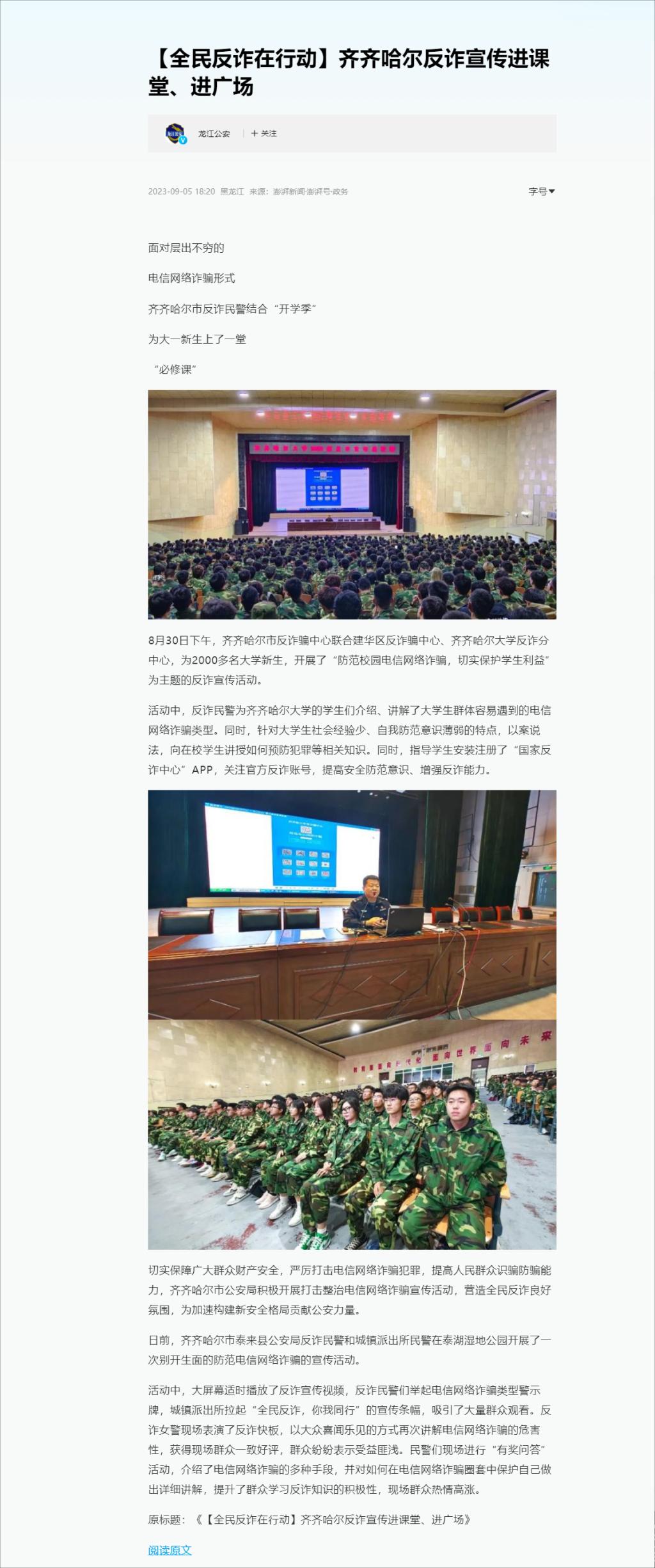 【澎湃新闻】【全民反诈在行动】齐齐哈尔反诈宣传进课堂、进广场
