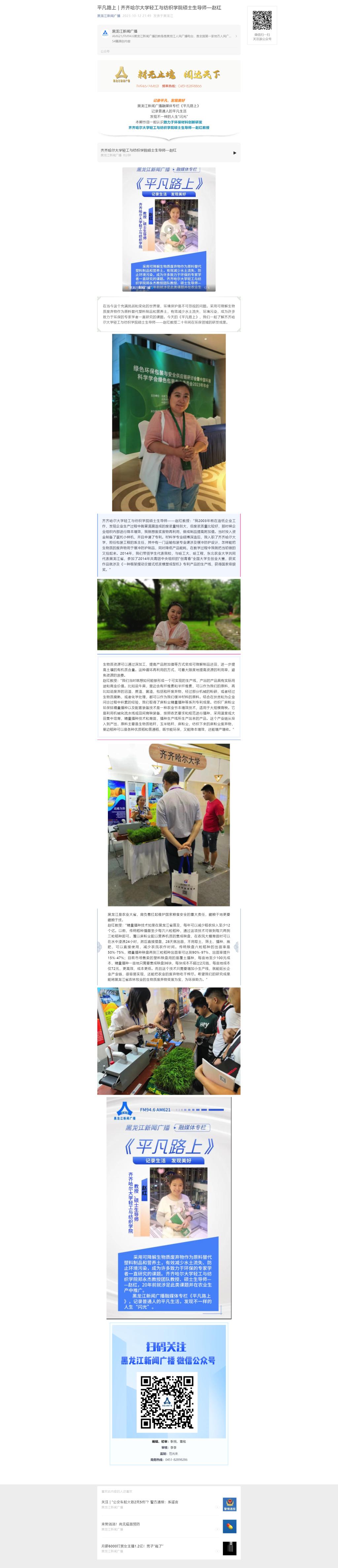 【黑龙江新闻广播】平凡路上 | beats365唯一官方网站轻工与纺织学院硕士生导师—赵红